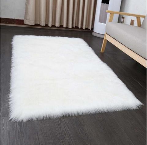 Hình chữ nhật Trắng Da Cừu lông xù Thảm 2ft x 3ft 3ft x 5ft 4ft x 6ft Faux Fur khu vực Thảm Bộ